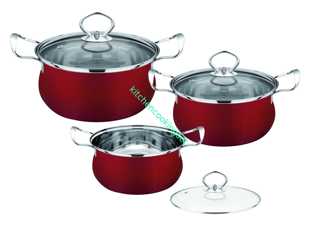 مجموعة أواني وأواني المطبخ الحمراء سهلة التنظيف ومجموعات تجهيزات المطابخ المصنوعة من الفولاذ المقاوم للصدأ