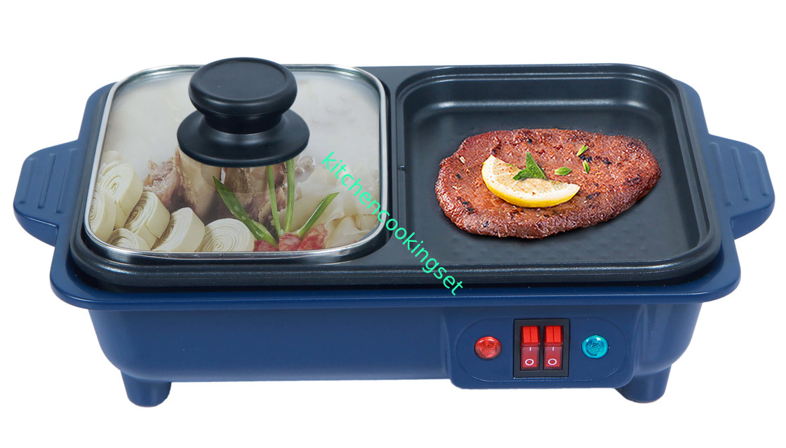 طباخ 2 في 1 متعدد الاستخدامات: هذا الطباخ الصغير متعدد الاستخدامات مناسب لطهي وجبة كاملة ، ويشمل وظيفة الوعاء الساخن ووظيفة الشواء.